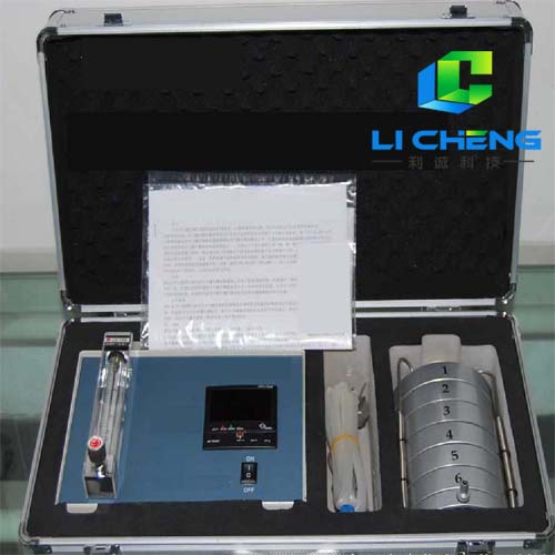 3、整個儀器是由撞擊器、主機(流量計)、定時器、三腳架組成。撞擊器是6層有微小孔眼的鋁合金圓盤。圓盤下放瓊脂平皿,每圓盤間有密封膠圈,在通過三個彈簧掛鉤把圓盤牢固地聯(lián)在一起。每個圓盤上有400個成環(huán)行排列、逐層減小、尺寸準確的小孔,標準采樣流量為1立方呎(28.3L/min)。當含有微生物粒子的氣流進入**上層的采樣口后,由于氣流的逐層增高,不同大小的微生物粒子按空氣動力學特征分別撞擊在相應(yīng)的瓊脂表面上。捕獲在各級上的粒子大小范圍是由該級孔眼的氣流速度和上一級的粒子截阻率而決定的。第1、2級類似人的上呼吸道捕獲的粒子,第3~6級類似人的下呼吸道捕獲的粒子,這就相當程度上復(fù)制了這些粒子在呼吸道的穿透作用和沉著部位。